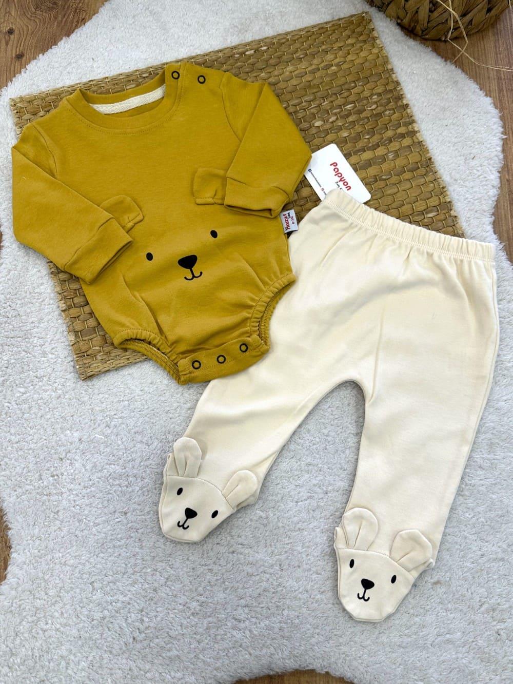 Ayı Surat Baskılı Erkek Bebek 2li Takım (0-3/3-6/6-9/9-12 Ay) (MURAT/8542/HARDAL)