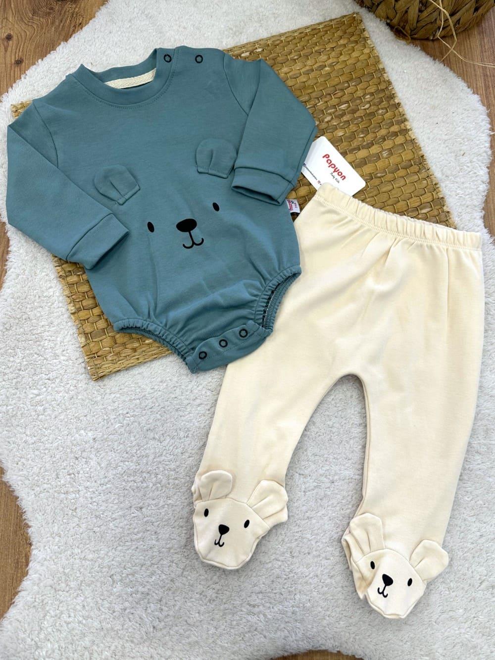 Ayı Surat Baskılı Erkek Bebek 2li Takım (0-3/3-6/6-9/9-12 Ay) (MURAT/8542/PETROL)