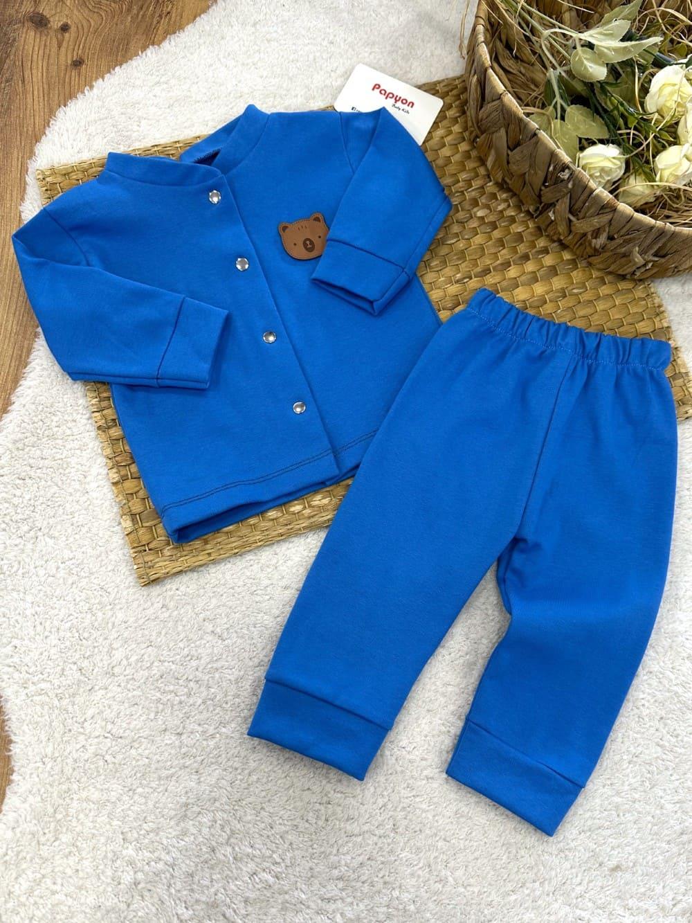 Ayıcık Armalı Önden Çıtçıtlı Bebek Pijama Takımı 6-9/9-12/12-18/18-24 Ay (CLOWN/0013/MAVI)