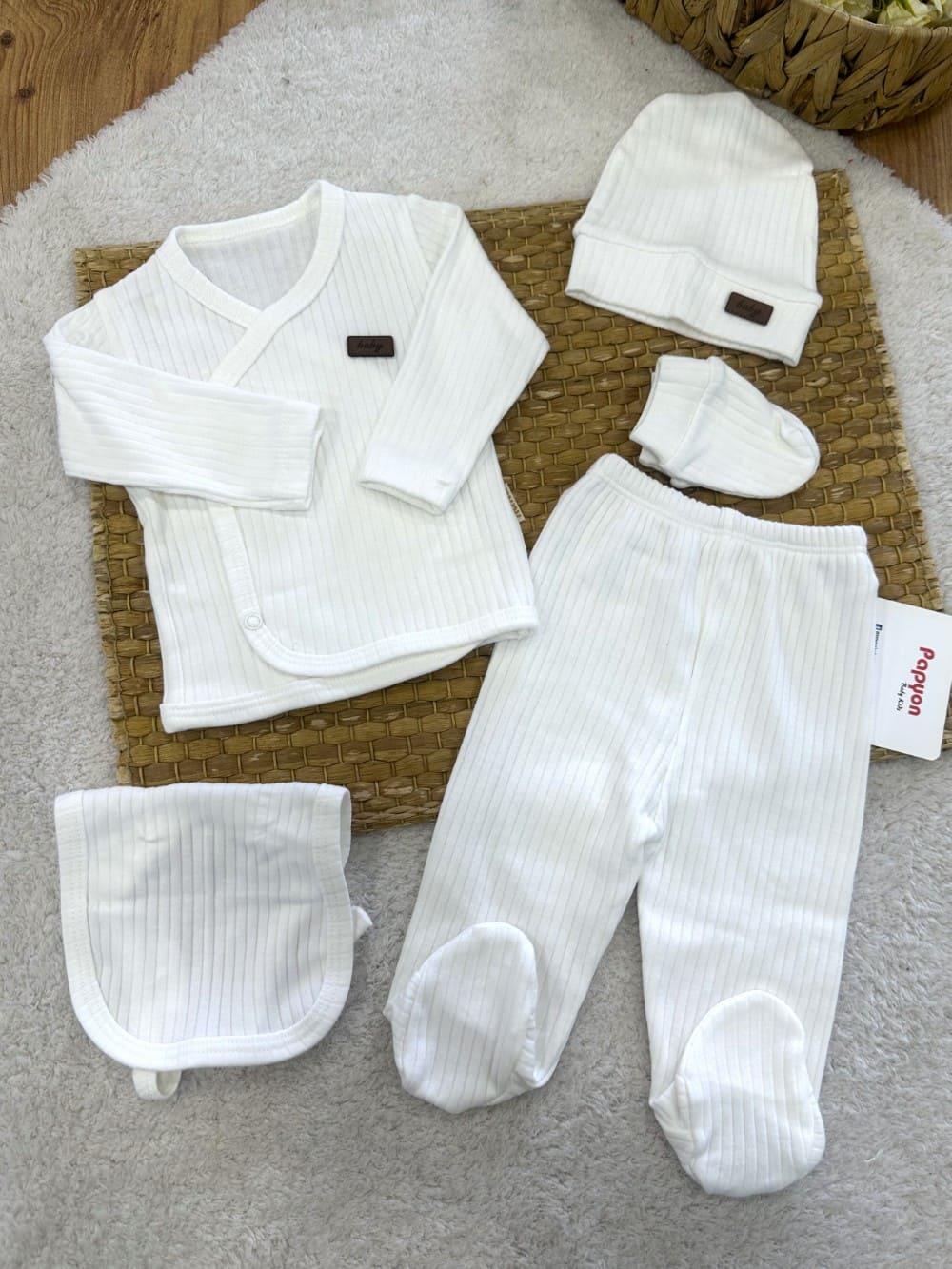 Baby Armalı Fitilli Düz Renk Yenidoğan Bebek 5li Zıbın Set