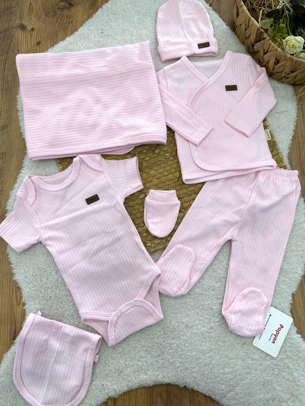 Baby Armalı Fitilli Düz Renk Yenidoğan Erkek Bebek 7li Hastane Çıkışı