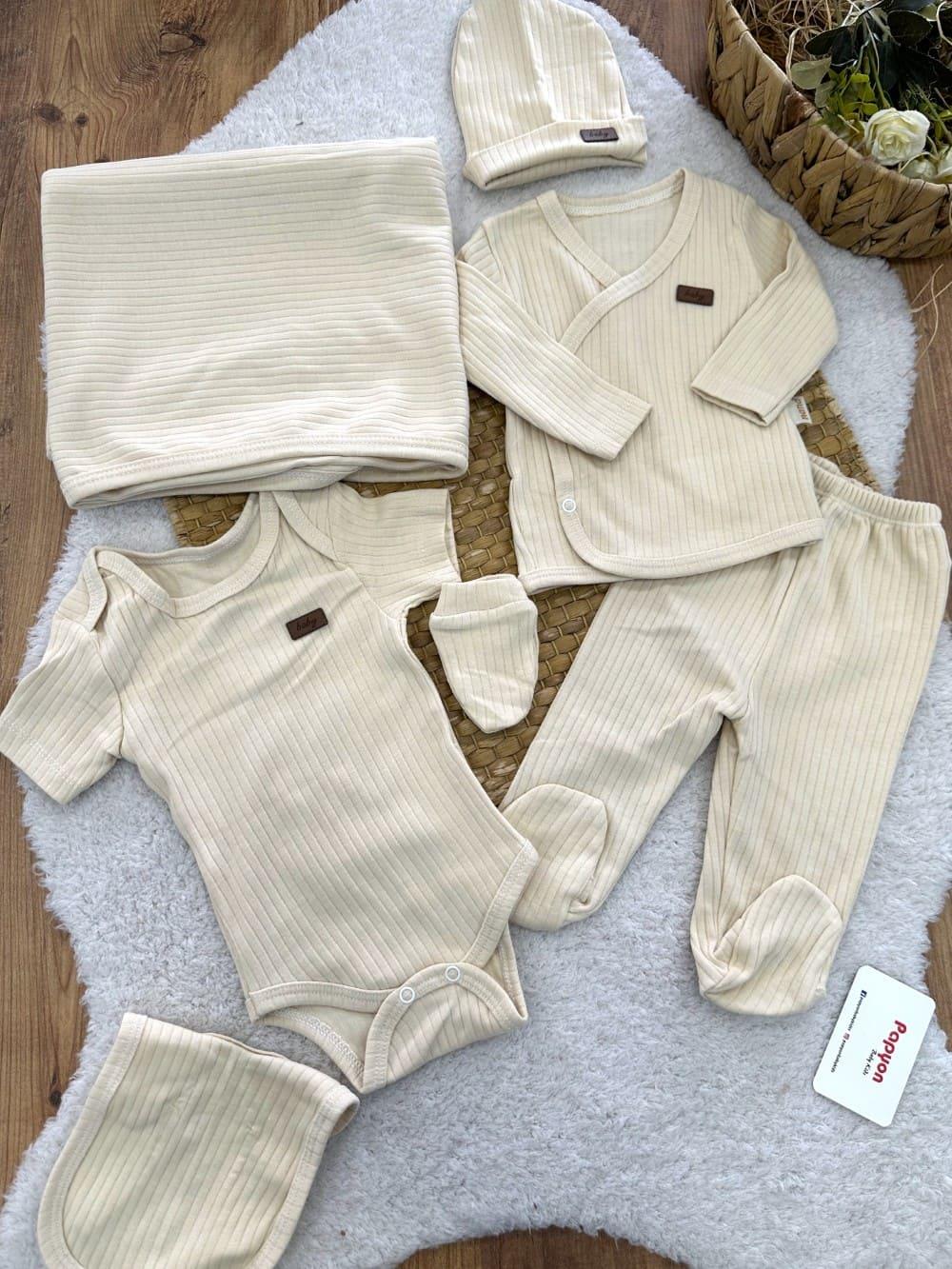 Baby Armalı Fitilli Düz Renk Yenidoğan Erkek Bebek 7li Hastane Çıkışı (NANA/20127/KREM)