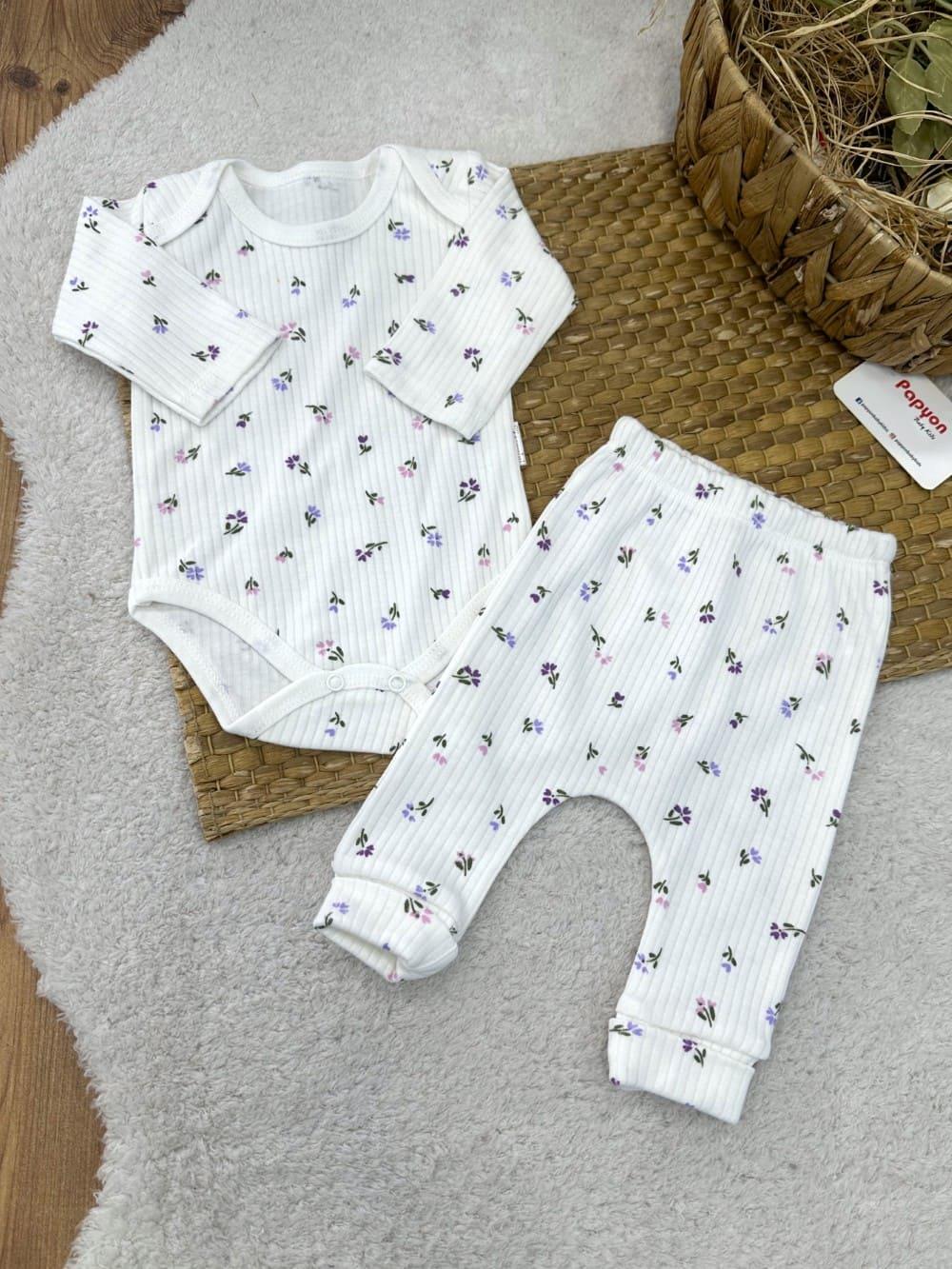 Çiçek Desenli Fitilli Badili Bebek Takım (0-3/3-6/6-9 Ay) (SUPERMINI/50002/CICEK)