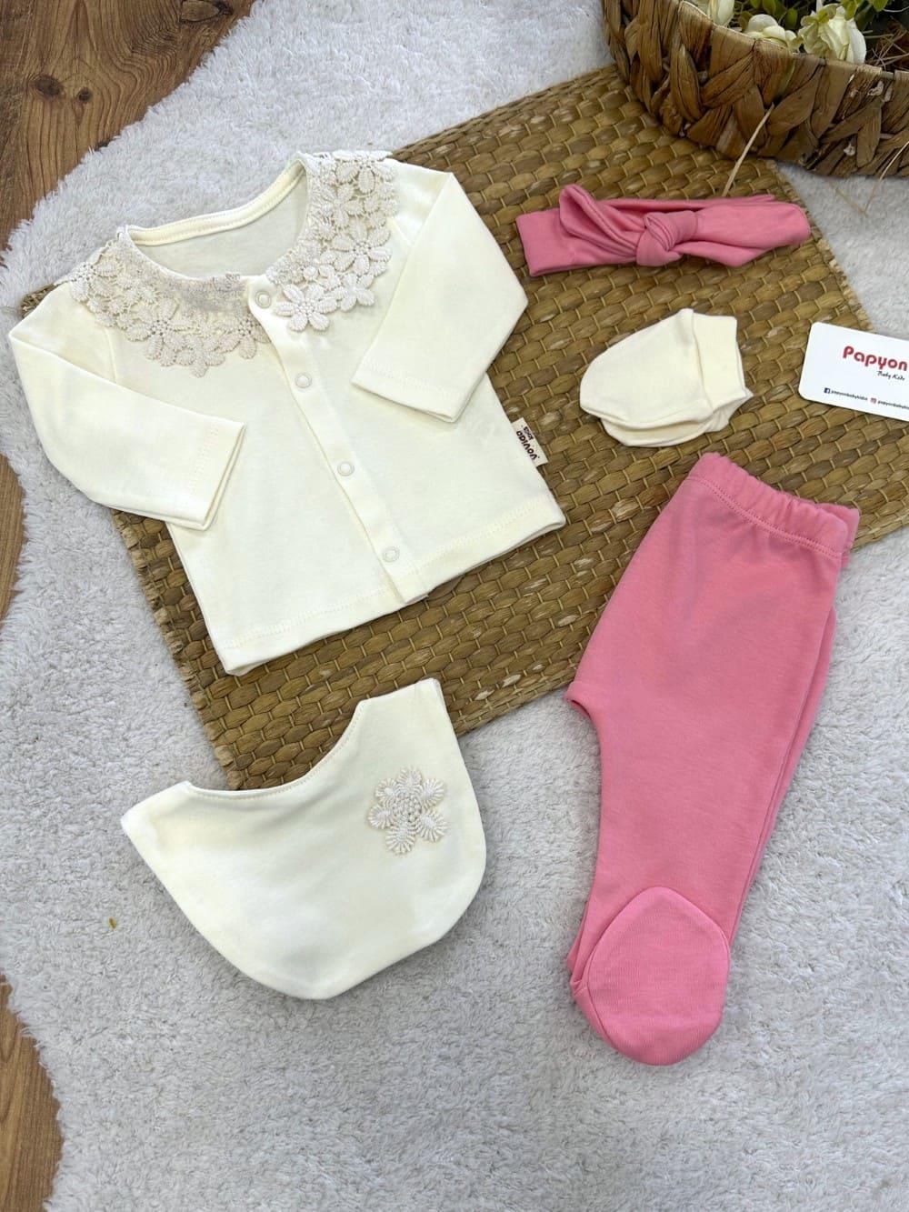 Çiçek Motifli Yenidoğan Kız Bebek 5li Zıbın Set