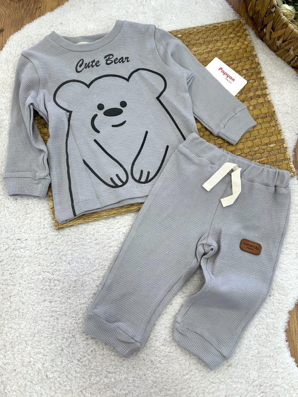 Cute Bear Baskılı Erkek Bebek 2li Takım (6-9/9-12/12-18/18-24 Ay) (BEBENDY/245020/GRI)