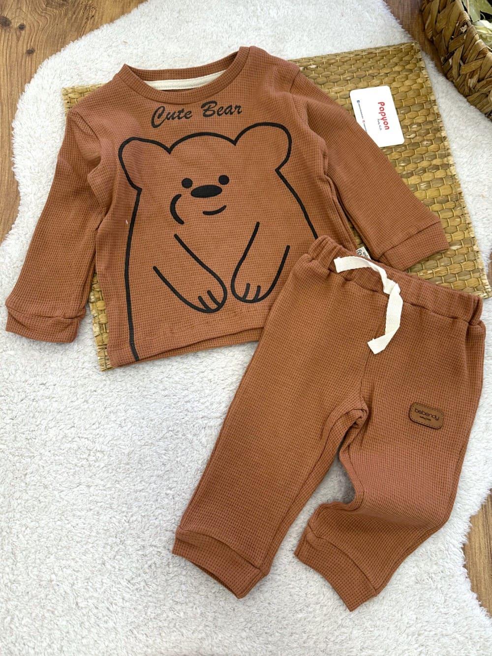 Cute Bear Baskılı Erkek Bebek 2li Takım (6-9/9-12/12-18/18-24 Ay) (BEBENDY/245020/KAHVE)