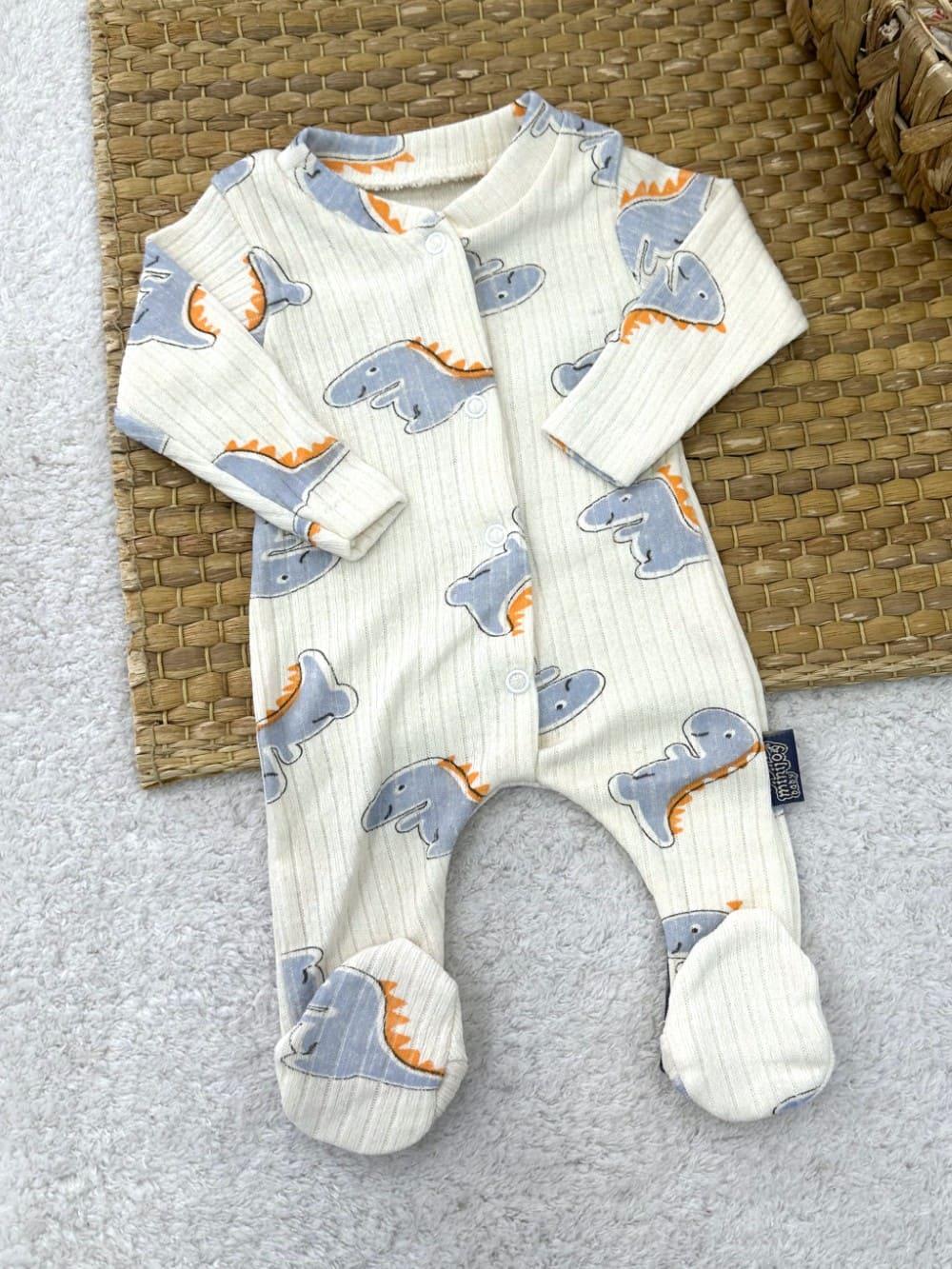 Dino Desenli Fitilli Bebek Tulum (0-1/1-3/3-6 Ay)
