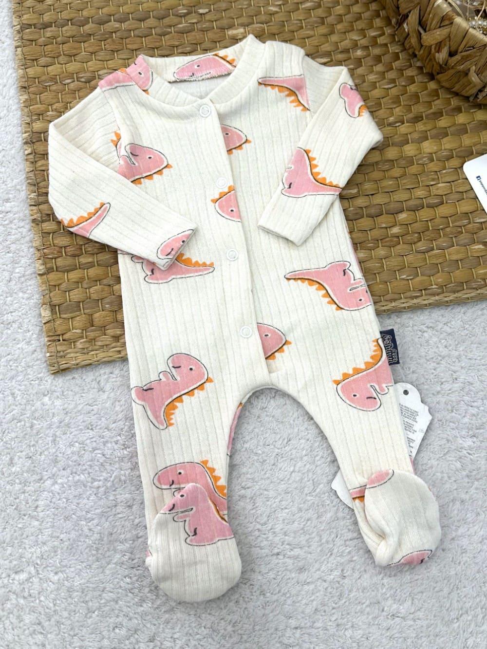 Dino Desenli Fitilli Bebek Tulum (0-1/1-3/3-6 Ay)