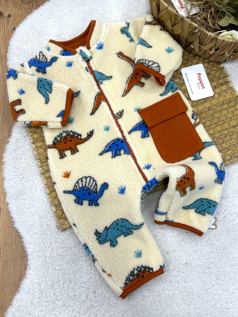 Dinozor Desenli Cepli Erkek Bebek Peluş Tulum (3-6/6-9/9-12 Ay)