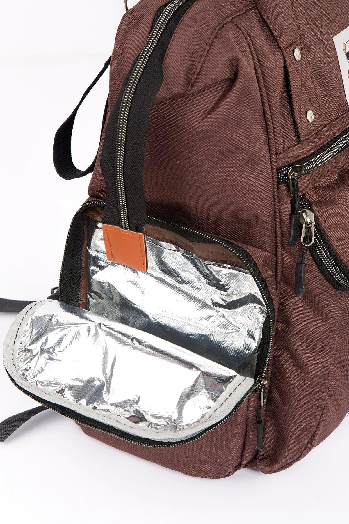 Bebek Bakım Sırt Çantası Termos Bölmeli Metal Kancalı Puset Askı Aparatlı Lüx Model (2023-1/KAHVE)