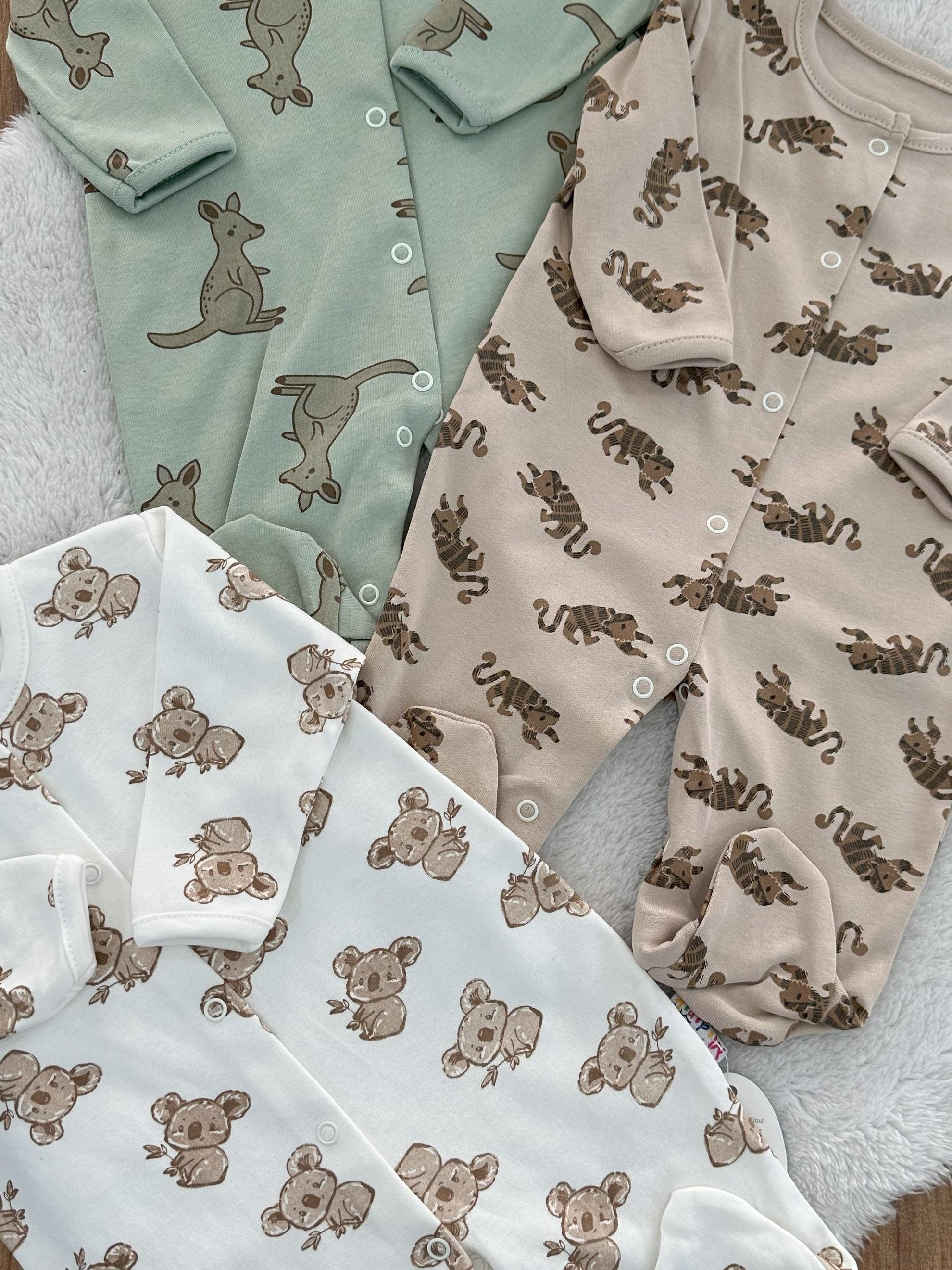 Hayvan Desenli Erkek Bebek 3lü Patikli Tulum Set 0-3/3-6/6-9 Ay