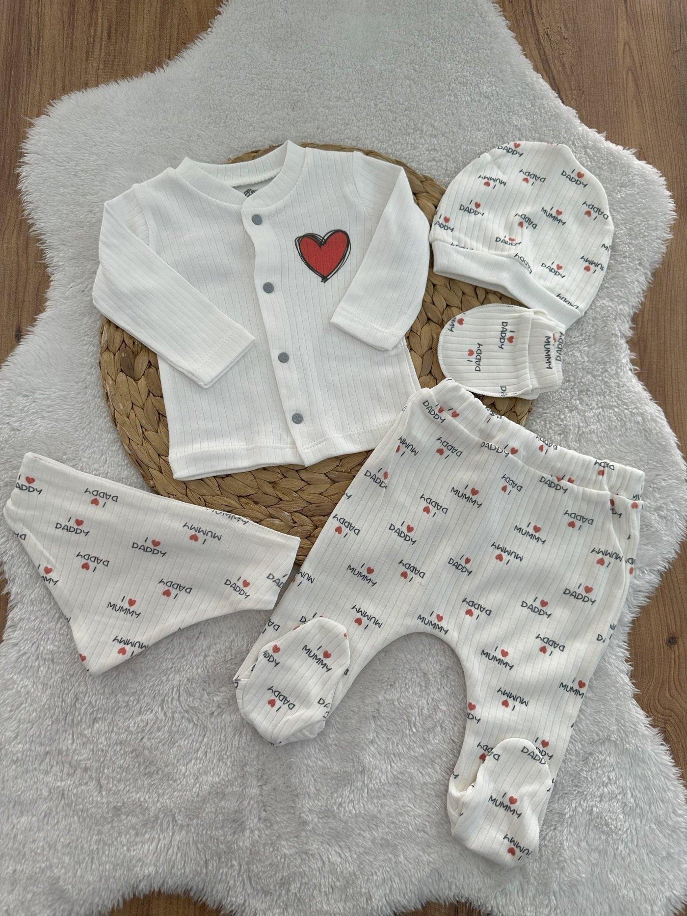 I Love Mummy Daddy Yenidoğan Uniseks Bebek Organik 5li Zıbın Set Hastane Çıkışı