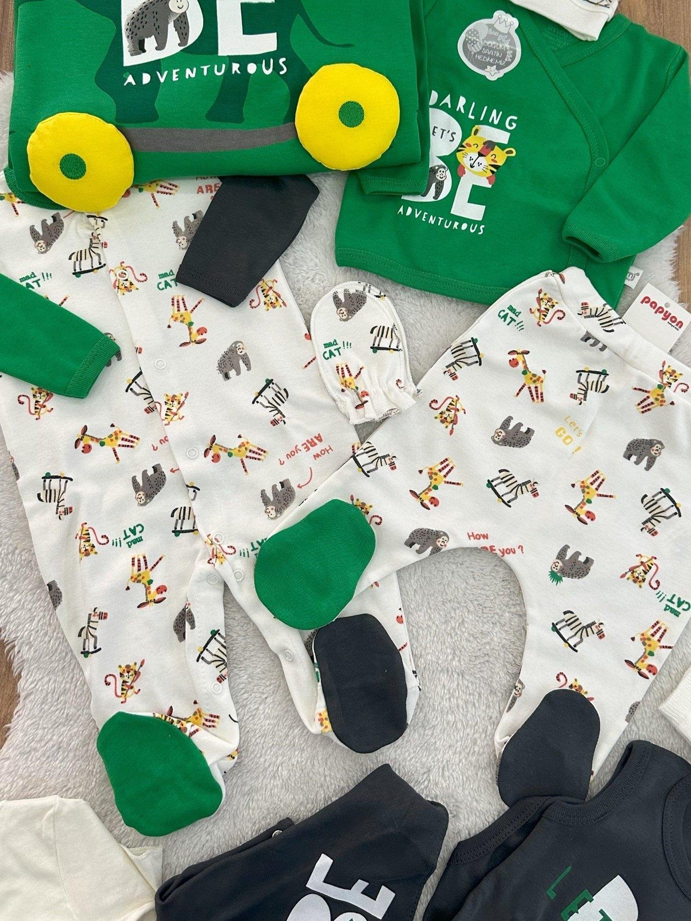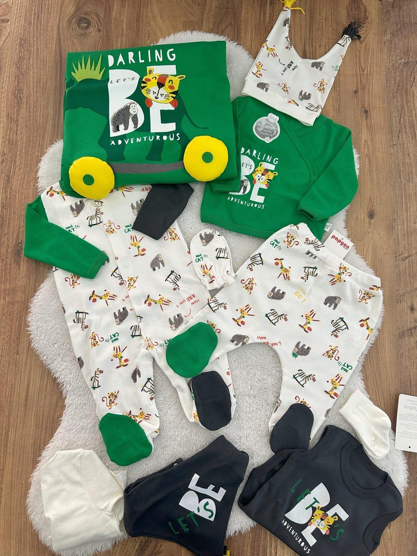Safari Model Yenidoğan Erkek Bebek Tulumlu 10lu Hastane Çıkış Seti