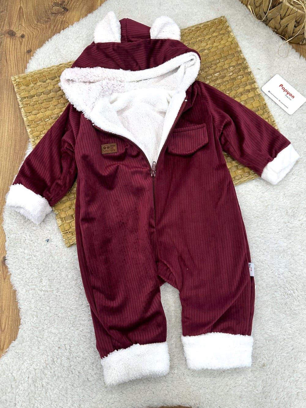 Fitilli Kadife İçi Welsoft Kapşonlu Bebek Tulum (6-9/9-12/12-18/18-24 Ay) (MURAT/6401/BORDO)