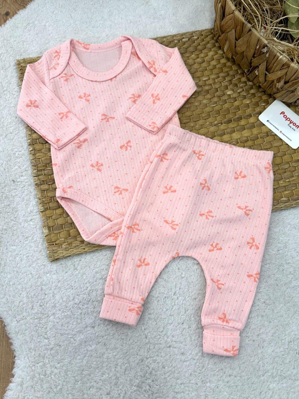 Fiyonk Desenli Fitilli Badili Bebek Takım (0-3/3-6/6-9 Ay)