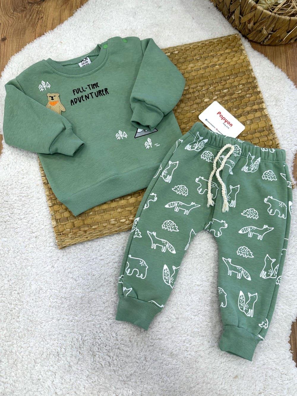 Full Time Adventurer Baskılı Erkek Bebek 3ip Şardonlu Takım (3-6/6-9/9-12/12-18 Ay) (VOI/57078/YESIL)