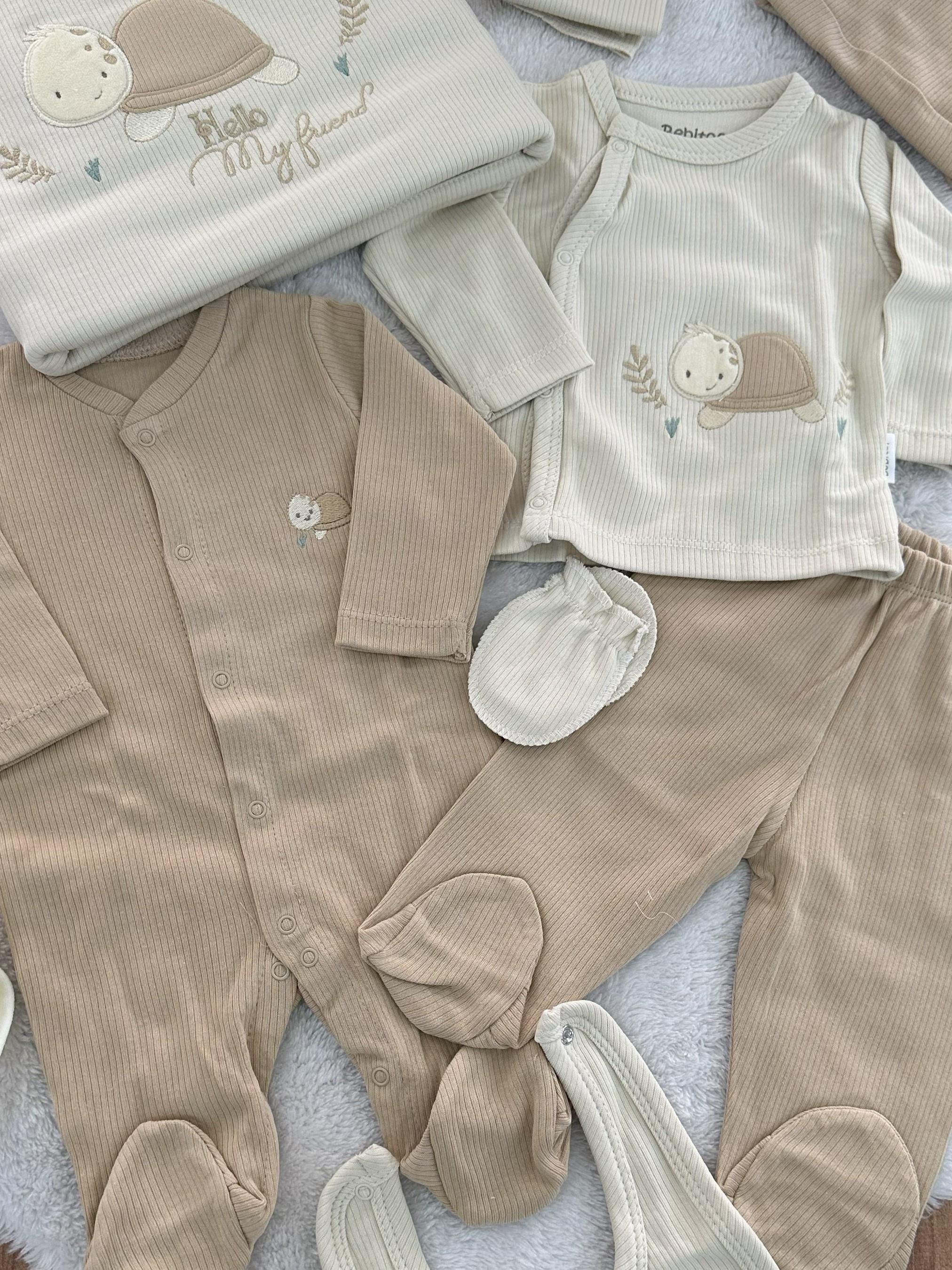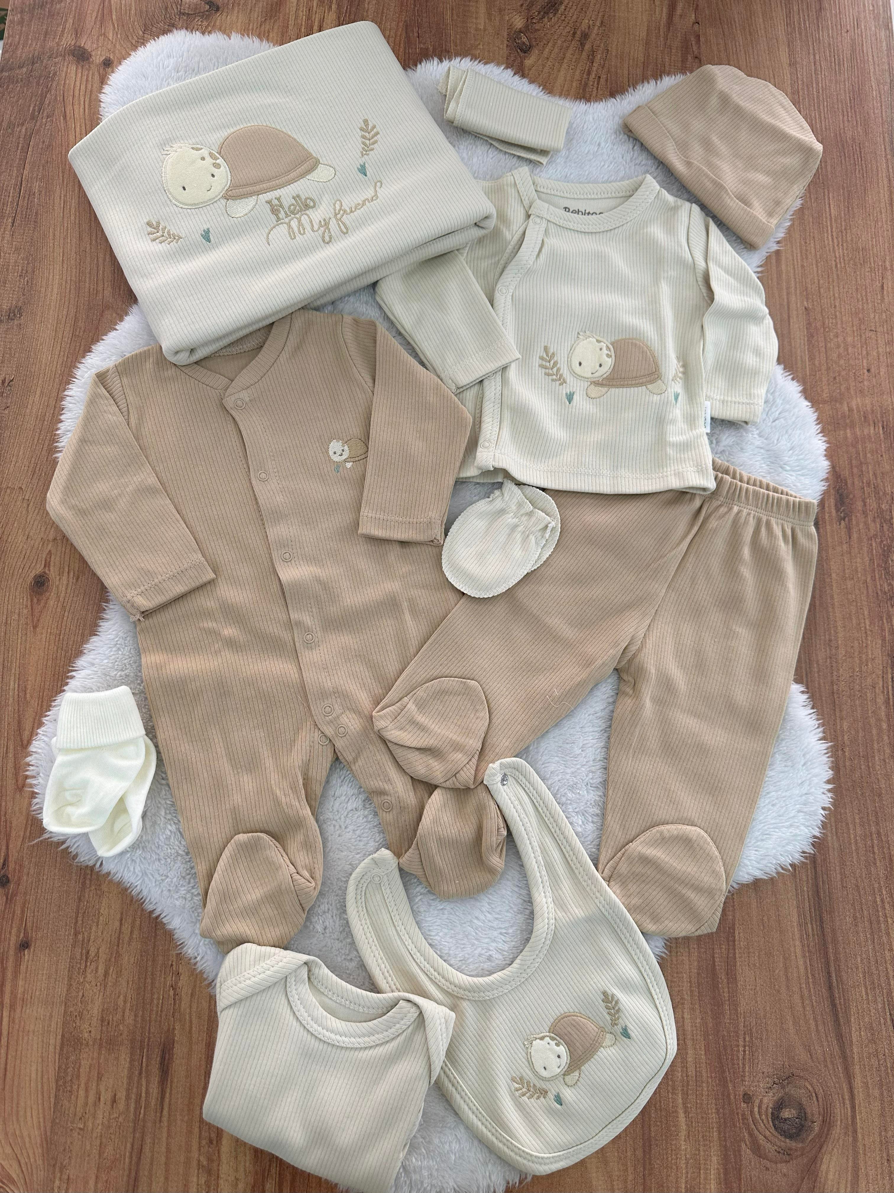 Gülen Kaplumbağa Raporlu Organik Uniseks Yenidoğan Bebek 10lu Zıbın Set Hastane Çıkışı