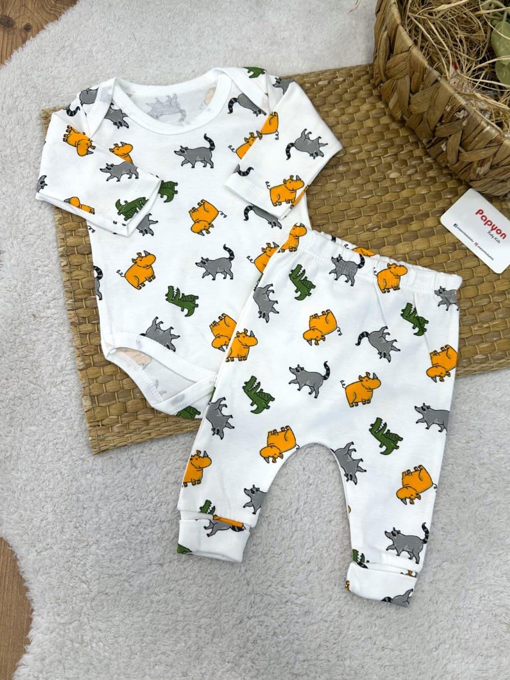 Hayvanlar Desenli Fitilli Badili Bebek Takım (0-3/3-6/6-9 Ay)