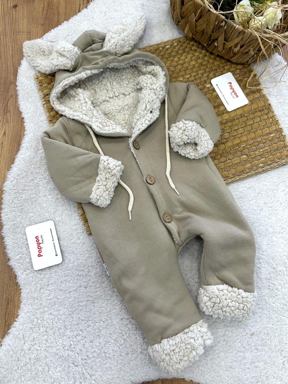 İçi Welsfot Tavşan Kulaklı Kapşonlu Düğmeli Bebek Tulum (6-9/9-12/12-18/18-24 Ay) (MURAT/7607/BEJ)