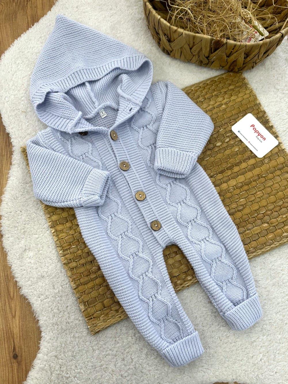 Kapşonlu Triko Örgü Bebek Tulum (3-6/6-9/9-12 Ay)