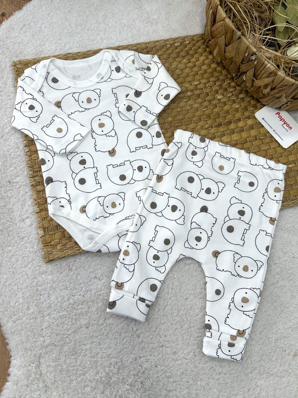 Koala Desenli Fitilli Badili Bebek Takım (0-3/3-6/6-9 Ay)