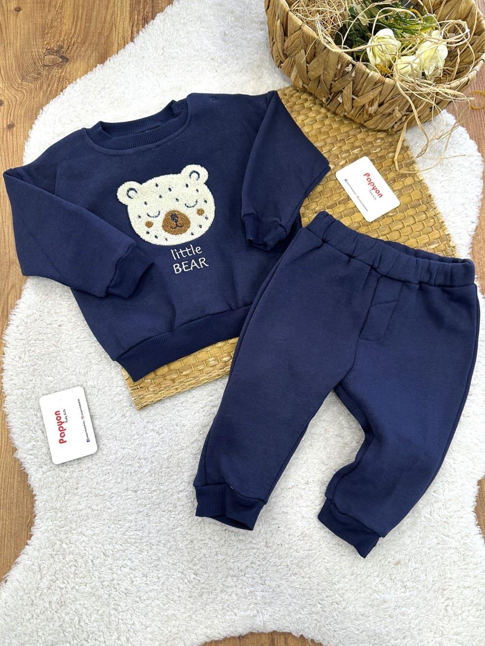 Little Bear Süzene Ayıcık Nakışlı Erkek Bebek Şardonlu Takım (6-9/9-12/12-18/18-24 Ay)