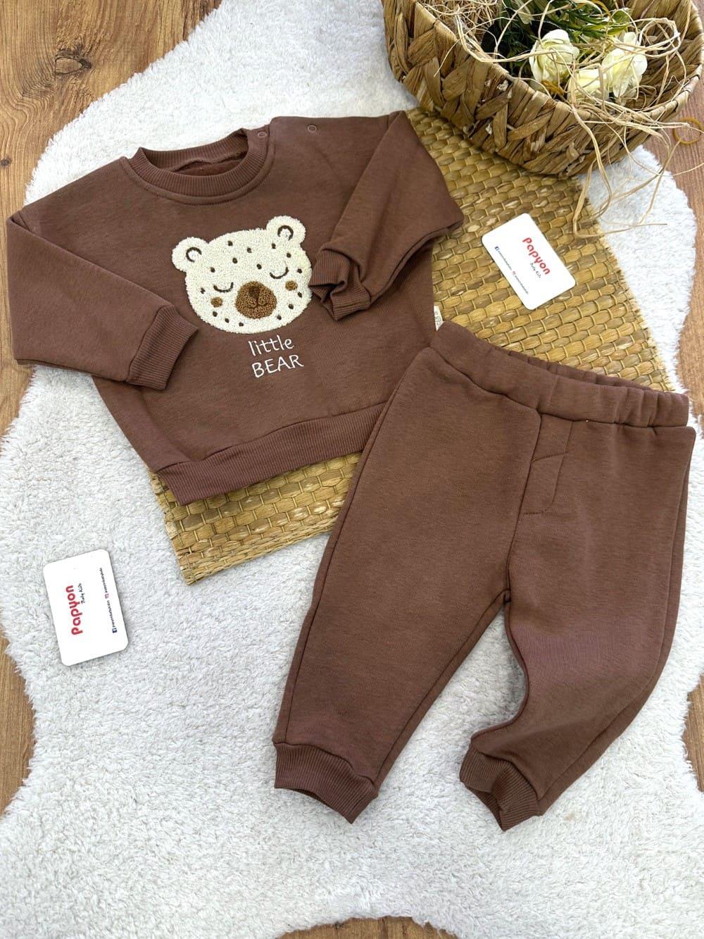 Little Bear Süzene Ayıcık Nakışlı Erkek Bebek Şardonlu Takım (6-9/9-12/12-18/18-24 Ay) (NECIX/244045/K.KAHVE)