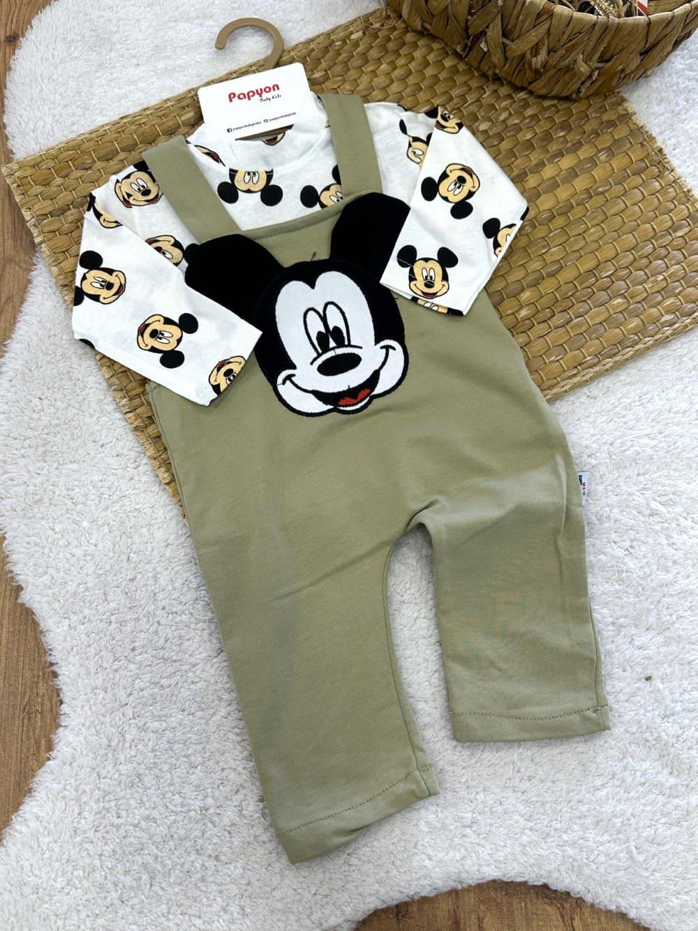 Mickey Mouse Erkek Bebek Badili Salopet Takım (0-3/3-6/6-9/9-12 Ay) (MURAT/5247/YESIL)