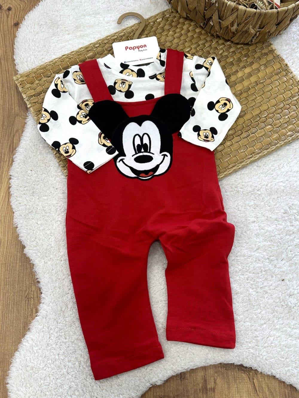 Mickey Mouse Erkek Bebek Badili Salopet Takım (0-3/3-6/6-9/9-12 Ay) (MURAT/5247/KIRMIZI)