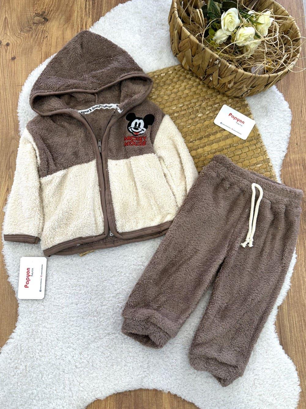Mickey Mouse Nakışlı Erkek Bebek Peluş Takım 6-9/9-12/12-18/18-24 Ay (MURAT/9097/KARAMEL)