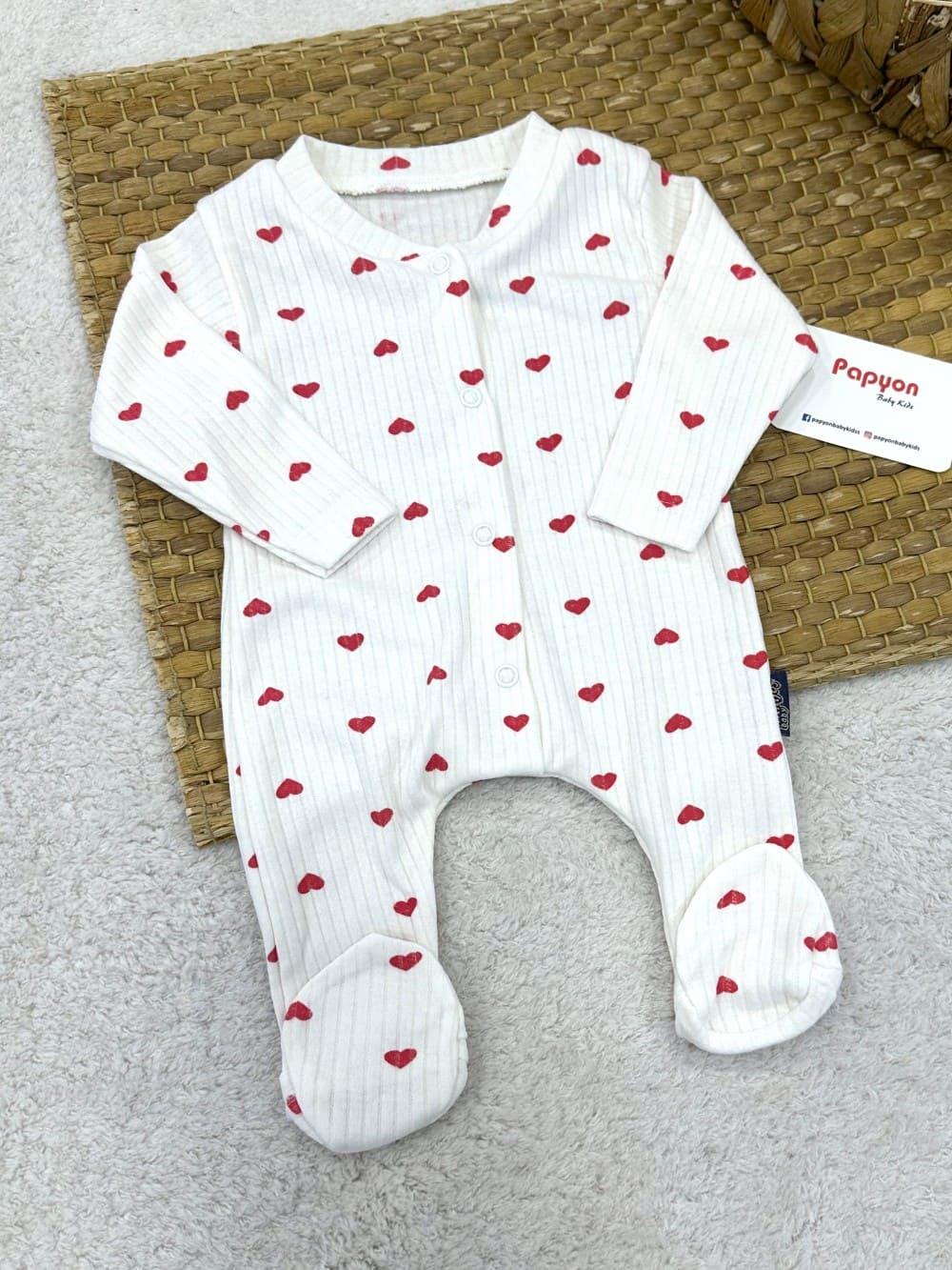 Minik Kalp Desenli Fitilli Bebek Tulum (0-1/1-3/3-6 Ay)
