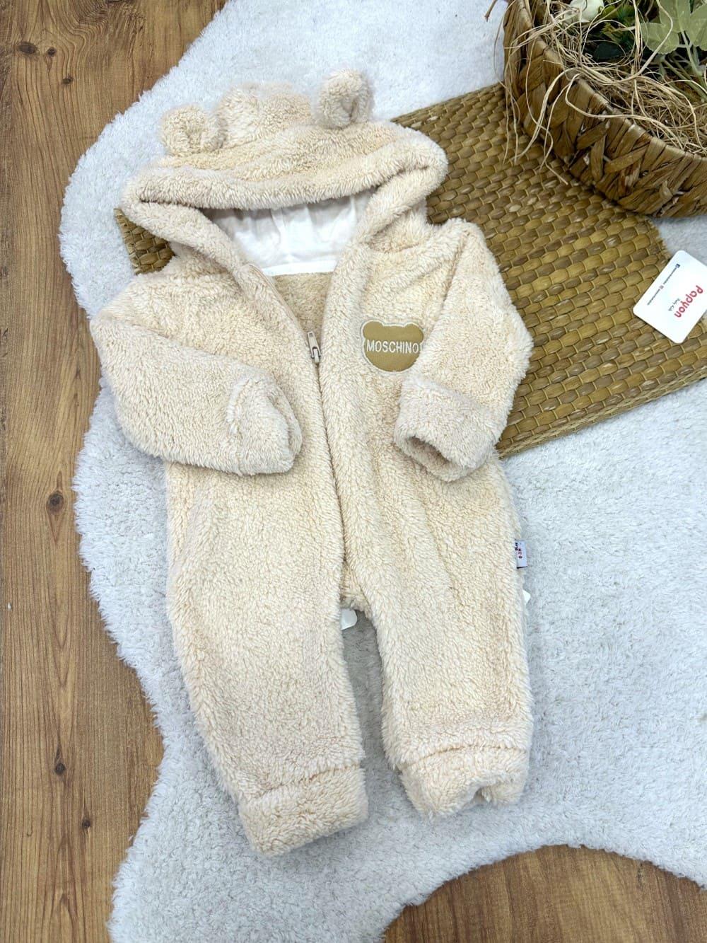 Moschino Armalı Kulaklı Kapşonlu Bebek Peluş Tulum (0-3/3-6/6-9/9-12 Ay)