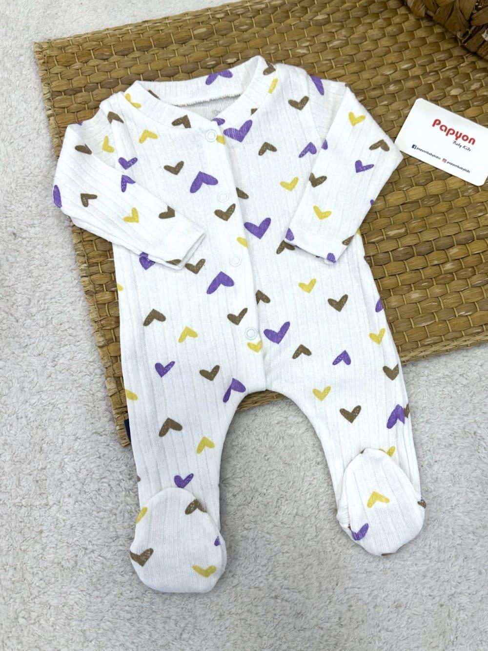 Renkli Kalpler Desenli Fitilli Bebek Tulum (0-1/1-3/3-6 Ay)