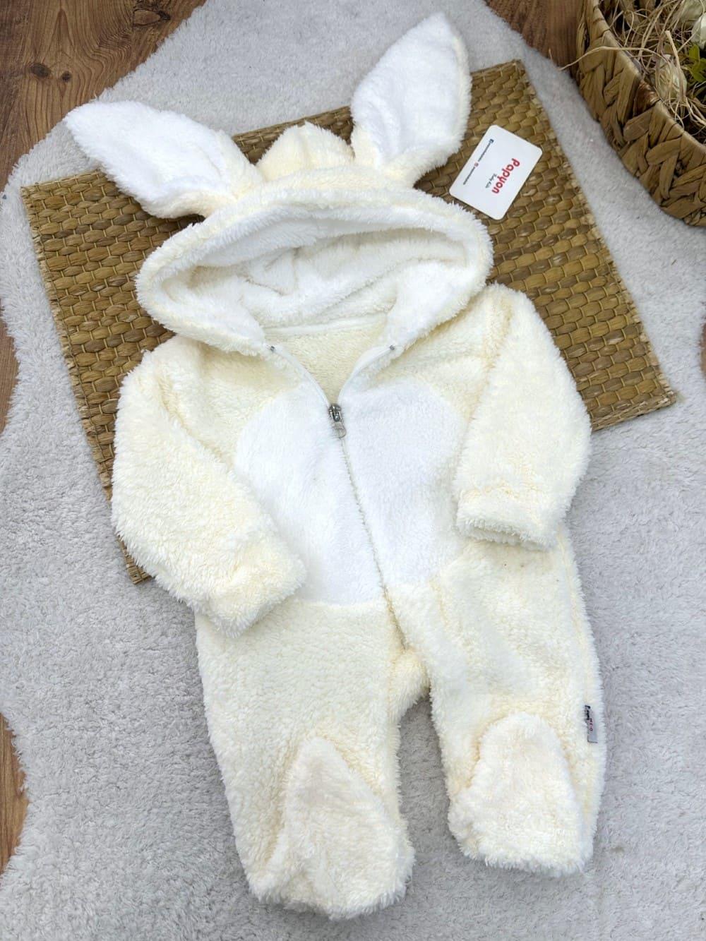 Tavşan Kulaklı Kapşonlu Bebek Peluş Tulum (0-3/3-6/6-9/9-12 Ay) (MURAT/9064/KREM)