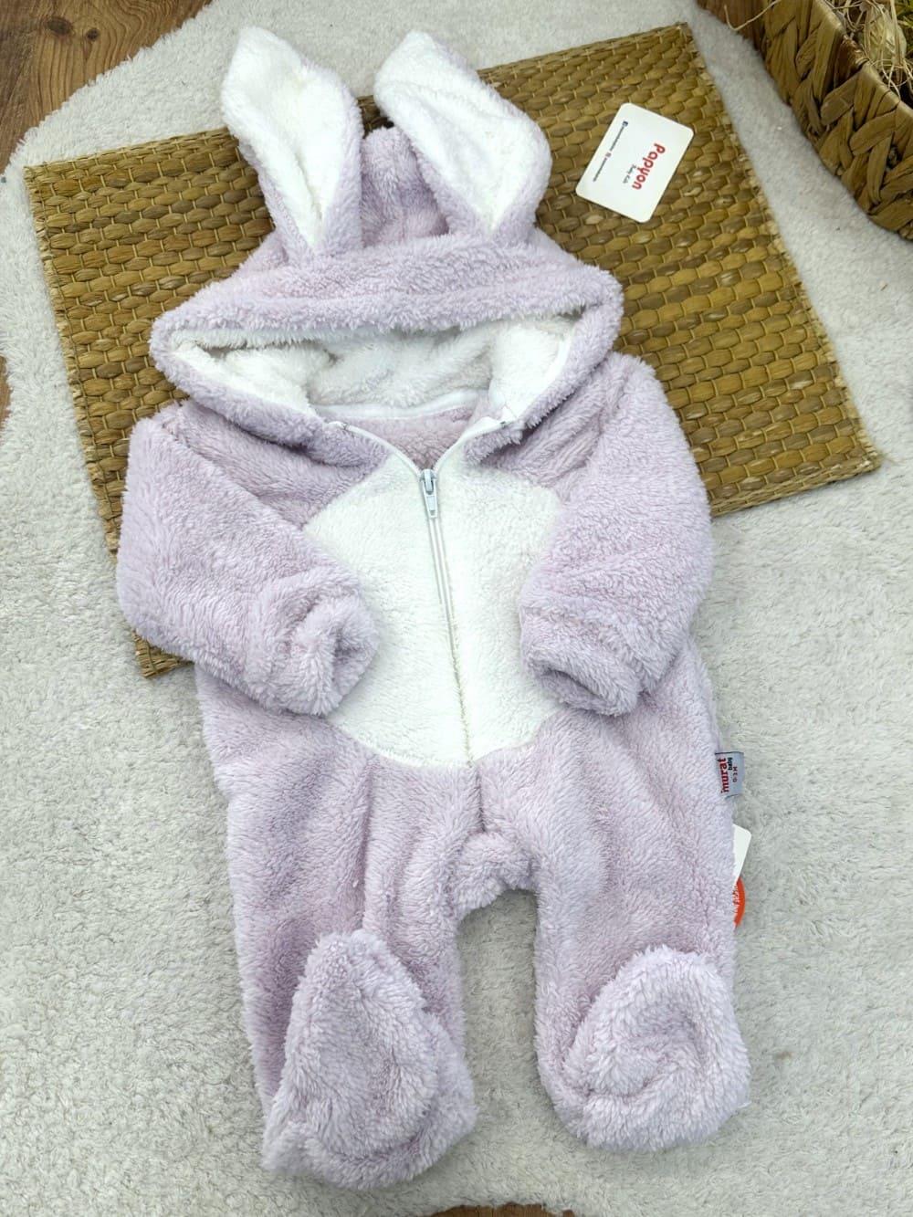 Tavşan Kulaklı Kapşonlu Bebek Peluş Tulum (0-3/3-6/6-9/9-12 Ay) (MURAT/9064/LILA)