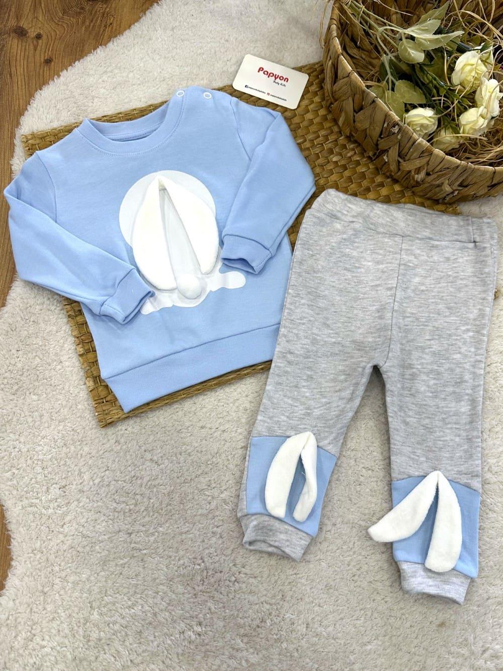 Tavşanlı Erkek Bebek 2li Takım (6-9/9-12/12-18 Ay) (NANA/25003/MAVI)