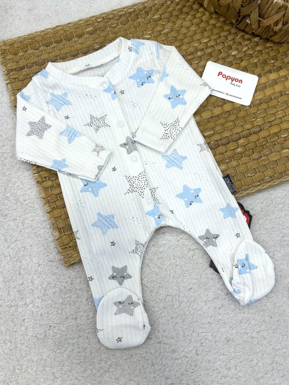 Yıldız Desenli Fitilli Bebek Tulum (0-1/1-3/3-6 Ay)